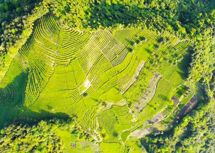 “茶圣”陆羽在其《茶经》中对茶的生长土壤如是说:“其地,上者生烂石,中者生砾壤,下者生黄土。出产“长龄1299”的茶园属世界稀有的高品质茶园基地,海拔高度1299米,该茶也因此得名。长龄1299茶园位于恩施大峡谷附近,以青山翠壑作伴,与清风云雾为侣,在烂石砾壤扎根,长期的交通不便与人为保护,使这里终年树木葱茏,云雾缭绕,加上丰厚的腐殖土与众多风化石,茶叶便自然长得汁满叶厚。