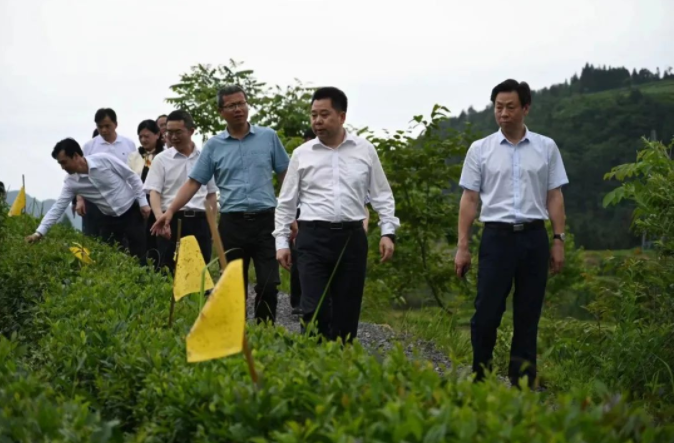 6月8日下午,湖北省政府秘书长、机关党组书记蔚盛斌,省政府办公厅副主任何丽君等领导在恩施州人民政府州长夏锡璠、恩施市委书记苏勇、恩施市市长向子明等领导的陪同下,到合肥思远物业租赁管理有限公司长龄1299茶叶基地调研。